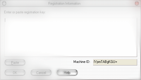 The machine id is located in the Registration Information dialog box, and looks like this: