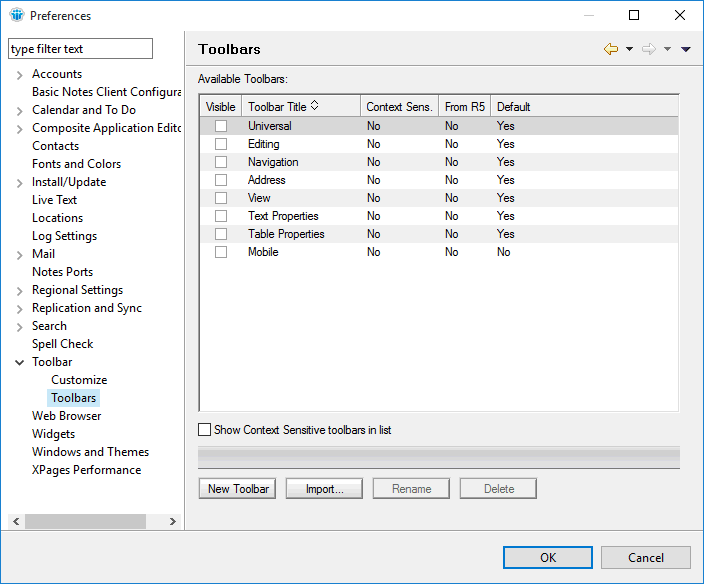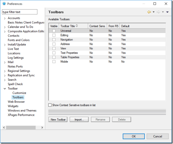 That's it! Now you have your own toolbar with some powerful Import Export buttons ready to use in any ordinary Notes-view. Below you see the toolbar you just have created;